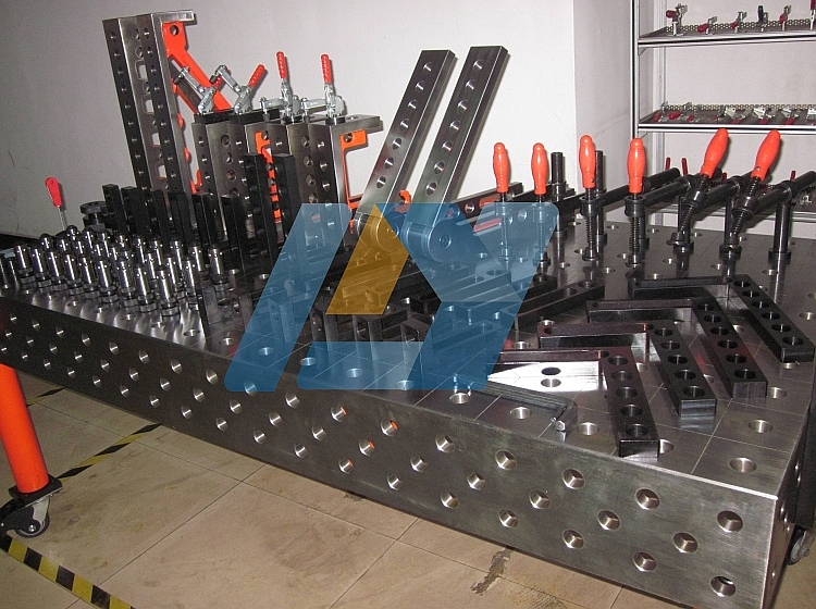 三維柔性工裝平臺(tái)是根據(jù)機(jī)械加工中焊接夾具的原理構(gòu)思而成,通過(guò)平臺(tái)基礎(chǔ)班與槽型孔附件,附件與附件相互搭配連接,能夠形成一套焊接組合工裝。